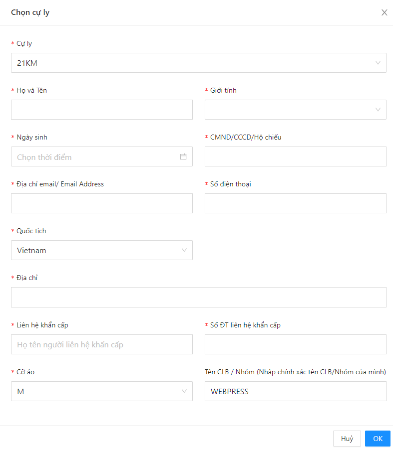 Trưởng hoặc đại điện của CLB/Nhóm hãy nhập chính xác thông tin của CLB và thông tin cá nhân của mình để BTC có thể liên lạc được với bạn.